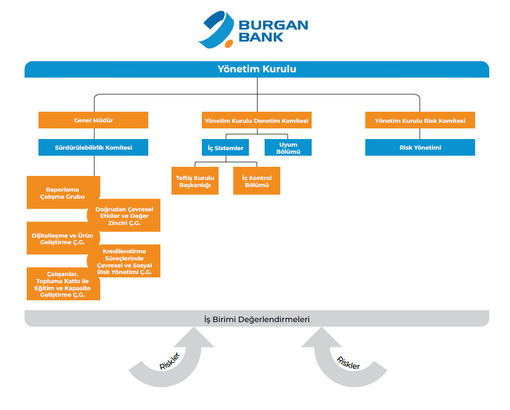 Bu gruplar, sürdürülebilirlik konularını kapsamlı ve disiplinler arası bir yaklaşımla ele alarak Bankamızın çevresel etkilerini azaltmak, toplumsal faydayı artırmak ve iyi yönetişim uygulamalarını güçlendirmek için çalışmaktadır. Komite ve çalışma gruplarımız, stratejilerimizin etkin şekilde hayata geçirilmesini sağlayarak Burgan Bank’ın uzun vadeli değer yaratma hedeflerine katkı sunmaktadır.